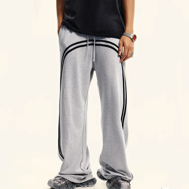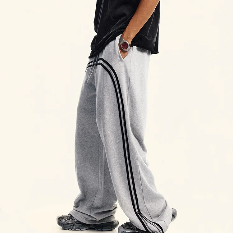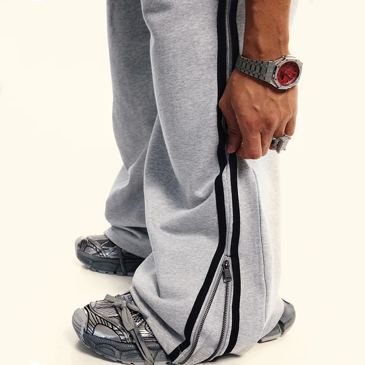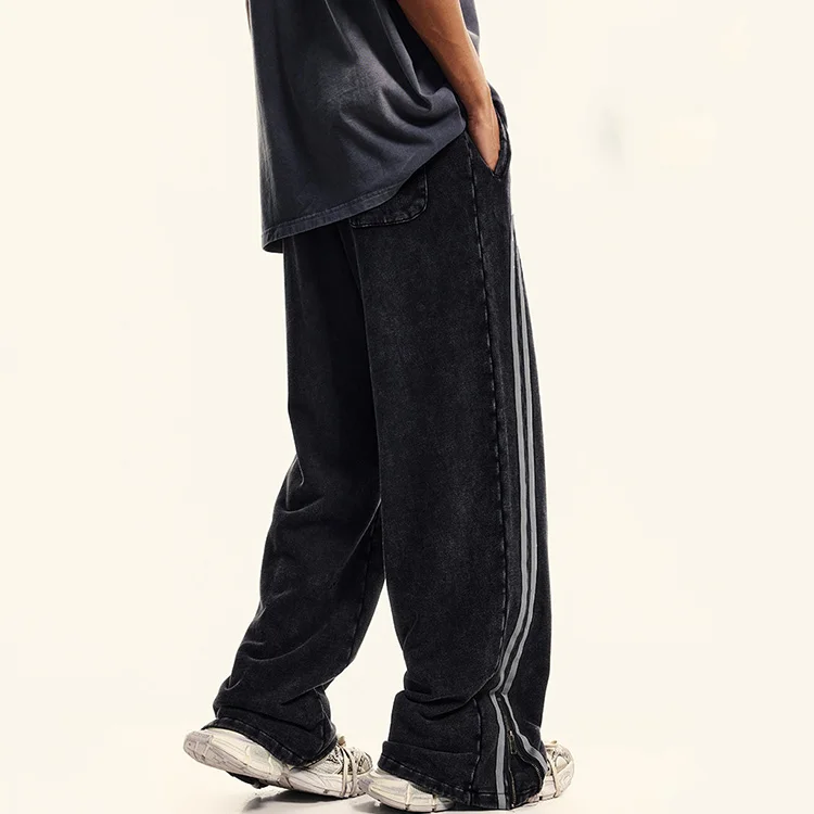 Trendy Men's Batik Washed Webbing Zipper Wide Leg Sweatpants